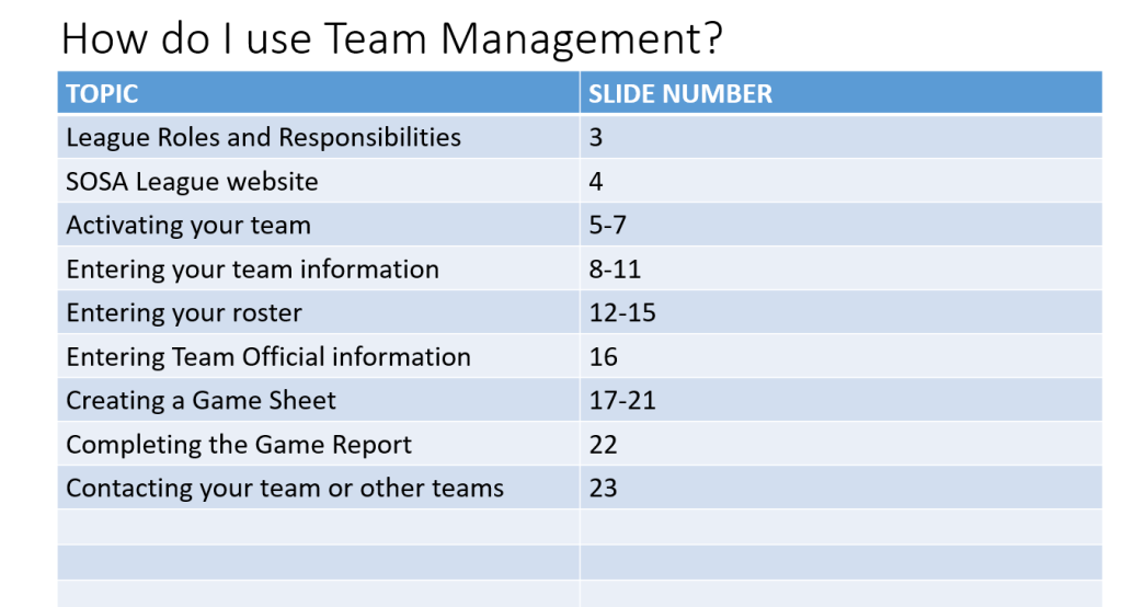 Updated PDF with instructions on how to use the SOSA League Management System effectively.